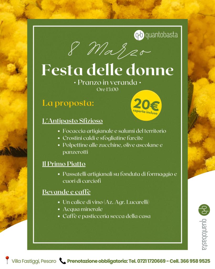 Home 8 marzo, il pranzo è servito! Pubblicato da qubicaffe il 23/02/202623/02/2026 8 marzo, il pranzo è servito! Un’occasione per ritrovarsi con le amiche o in famiglia, prenota adesso i posti sono limitati! Telefono: 0721 1720669 Cellulare: 366 958 9525 Condividi: Condividi su X (Si apre in una nuova finestra) X Condividi su Facebook (Si apre in una nuova finestra) Facebook Mi piace Caricamento... Related